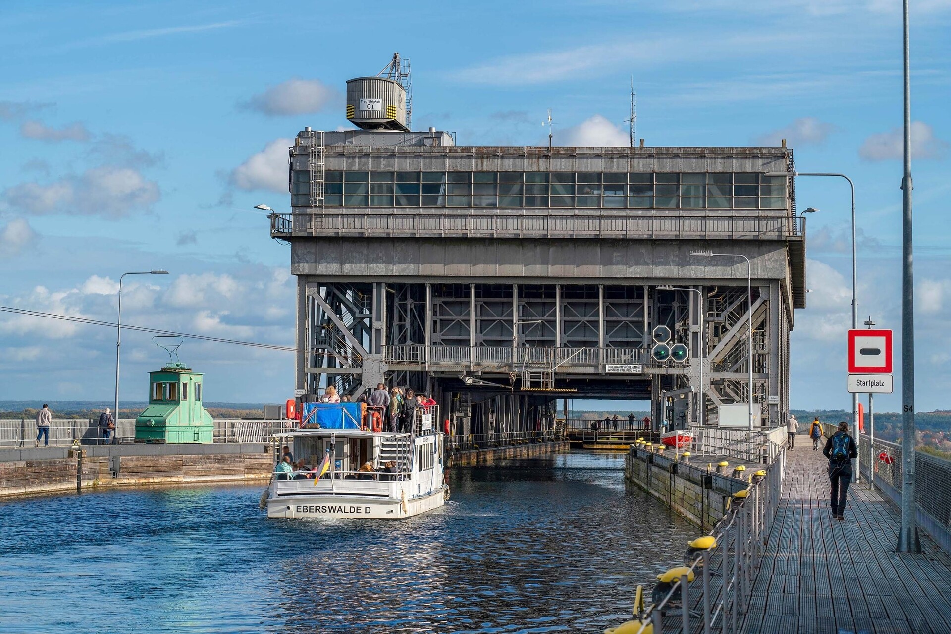 Tour: The starting point is the pier in the Lower Harbor at the Old Ship Lift, very close to the historic Finow Canal. After ascending via the ship lift, the boat turns around in the Upper Harbor. It then returns to the starting point—with an optional stop in the Upper Harbor. During the trip, you’ll receive fascinating background information on the history of the Oder Bend, the ship lifts, and how they work. The trip lasts approximately 45 to 90 minutes.