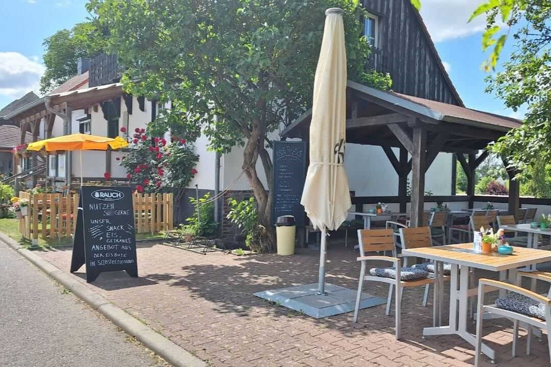 Regional specialities are served, including fish from the Oder - depending on what the fisherman has in his net that day. One of the specialities on the menu is the ice bone aspic. For dessert and coffee, there are cakes with ingredients from the garden such as rhubarb, apple crumble or cheesecake.