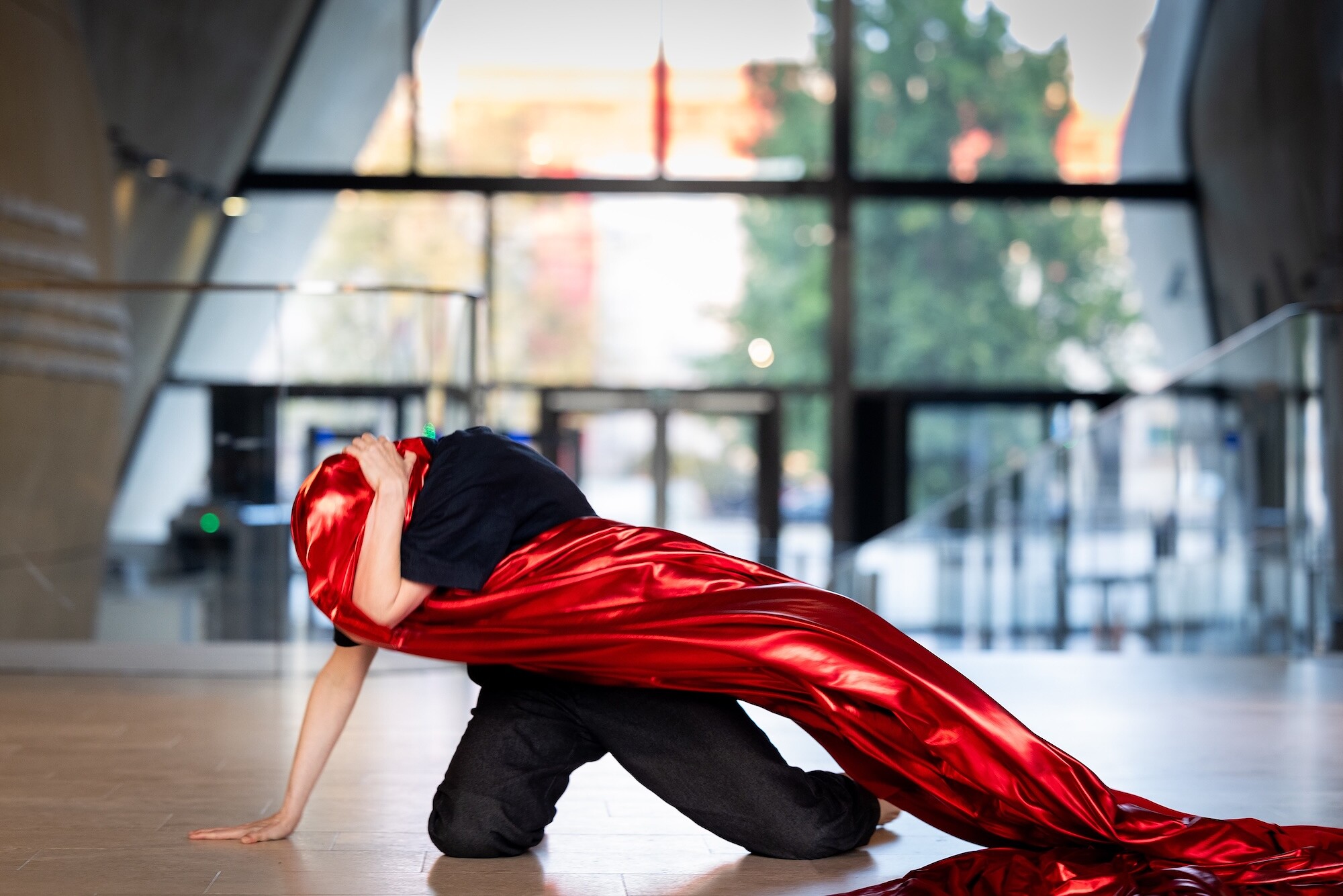 Zwei Tänzerinnen und ein Kontrabassist verleihen verlorenen, verdrängten oder fragmentierten Erinnerungen eine physische Form. Vergrabene und vergessene Geschichten kommen langsam wieder zum Vorschein. Bruchstücke ordnen sich neu. Was lange unausgesprochen blieb, wird neu in Bewegung übersetzt. Ein Stoff wird dabei zum verbindenden Element, als Haut, Grenze, Schutz und Resonanzraum zugleich. Er erinnert an das, was uns trennt, und an das, was uns trägt. So entsteht eine intime Brücke: ein Tanz über Erinnerung, über Verbindung und Verwandlung, über Identität.